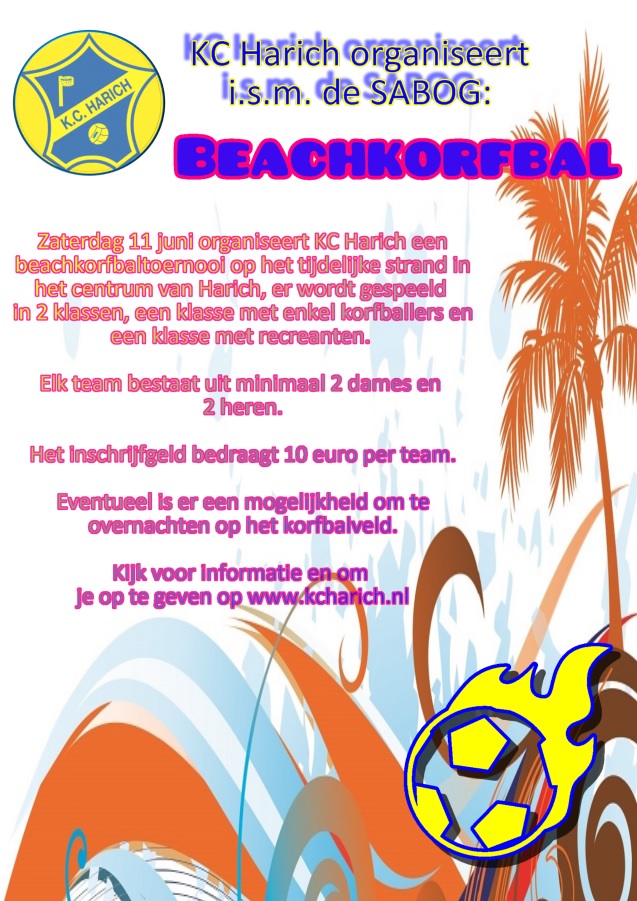 KC Harich organiseert i.s.m. de SABOG een beachkorfbaltoernooi op het stran