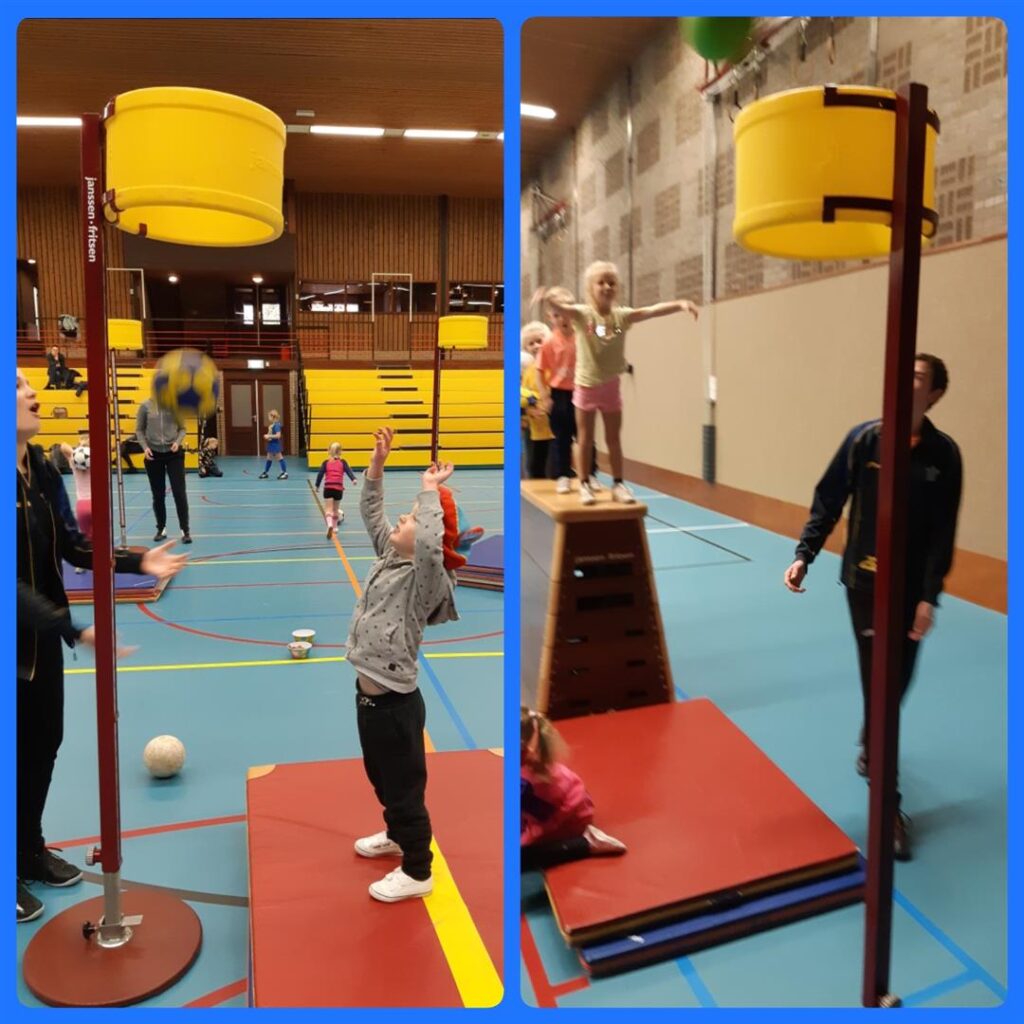 Vandaag was er de eerste Kangoeroe ’training’ in de zaal. De kinderen van 3 t/m 6 jaar, veelal verkleed als Piet, slingerden in de touwen en klommen over schuine daken om zo pakjes door de schoorsteen te gooien. Ze gooiden obstakels van het dak, waarna er gebouwd kon worden aan een grote schoorsteen. Elk doelpunt in het korvenpark werd beloond met een pepernoot. Een mooie en sportieve ochtend waarbij de jongste talenten op een speelse manier hebben kennisgemaakt met de basisbeginselen van het korfbalspel.