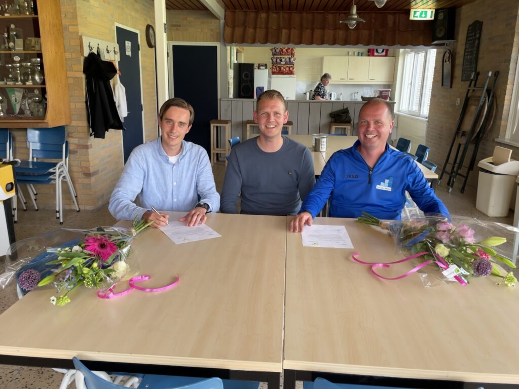 Op de foto ziet u Freddy (namens Haantjes Motus), Ayelt (namens ‘t Lear en Mear) en Arend (namens de sponsorcommissie) bij het tekenen van de sponsorovereenkomst.